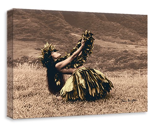 art print gallery Offering to Pele Hula Dancer by Alan Houghton - Hawaiian Art Canvas Print Gallery Wrapped, 9" X 12"