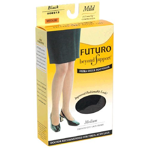 sheer panties Futuro Energizing Pantyhose, Ultra Sheer, French Cut, Lace Panty, Mild, Medium, Black